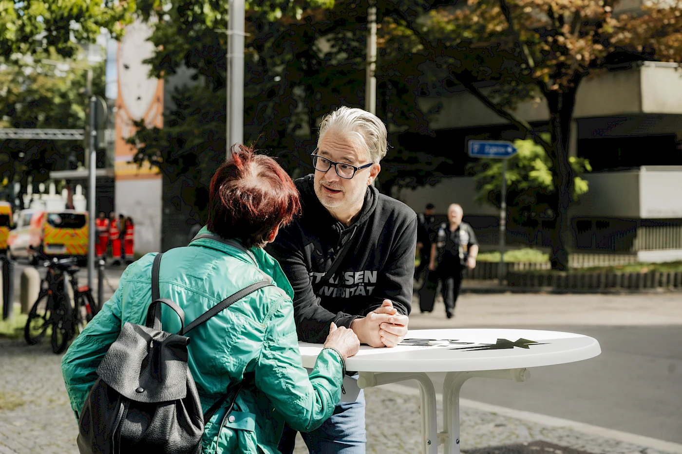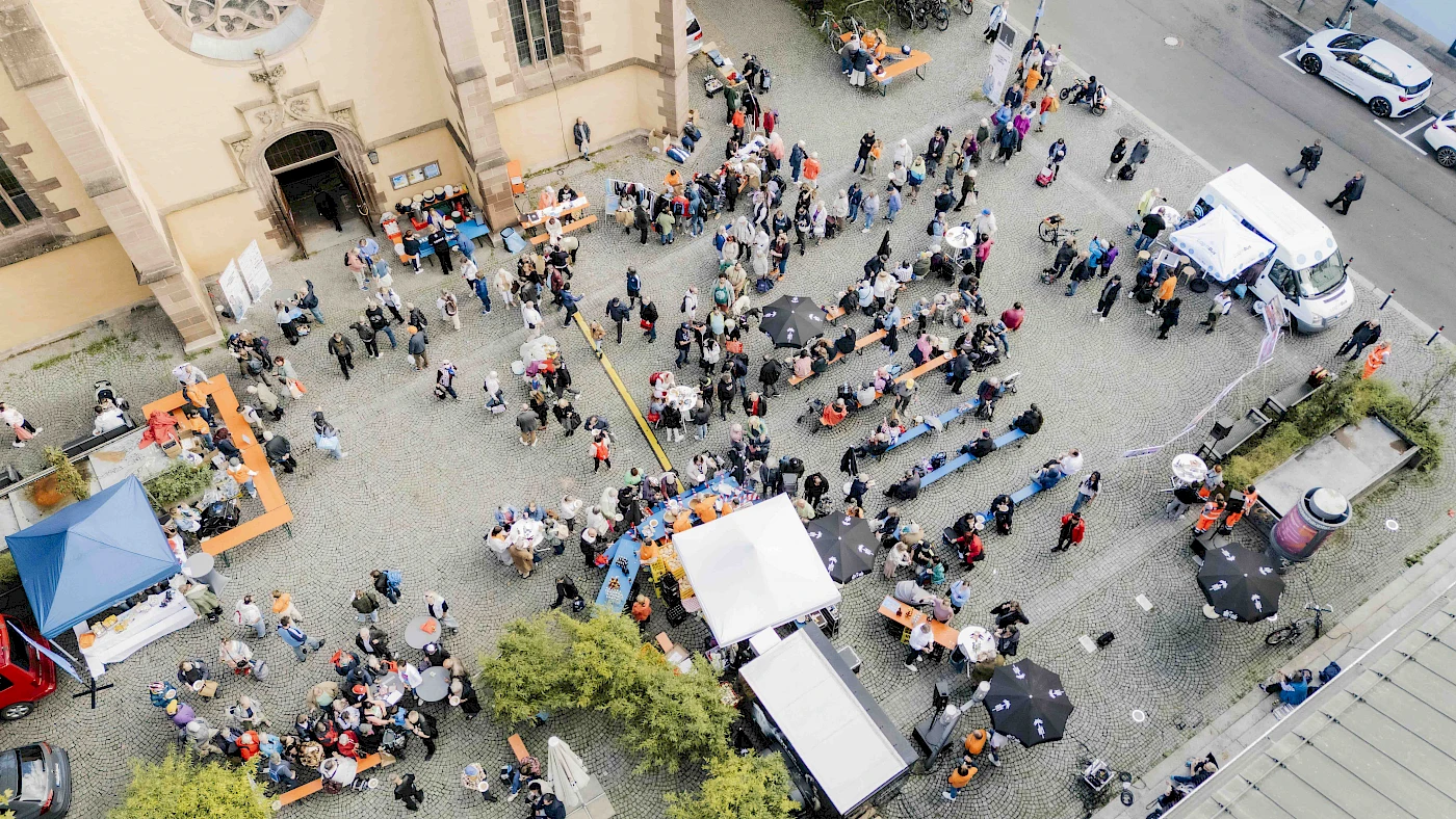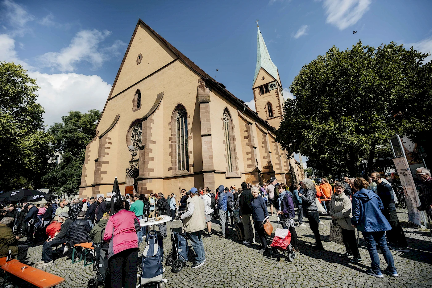 Eröffnet wurde das Fest um 11 Uhr mit einem Gottesdienst in der Leonhardskirche, begleitet von einer Predigt von Christoph Sonntag und musikalischen Beiträgen des Chors „Rahmenlos & Frei“. Ab 12 Uhr füllte sich der Platz mit Leben – mit einem bunten Straßenfest und zahlreichen kostenlosen Angeboten für alle Gäste.